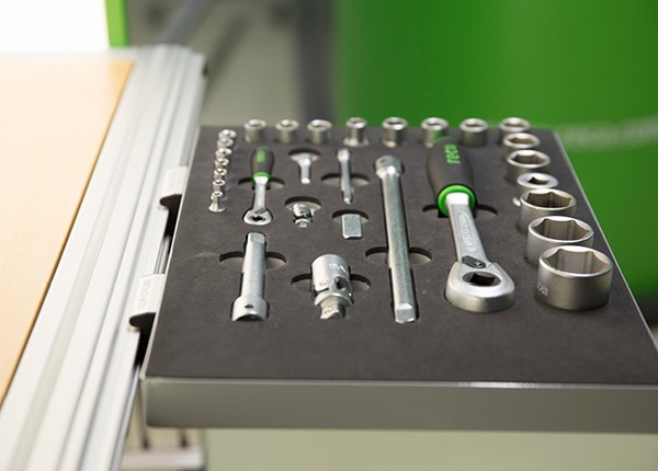 Komplexe Produktlösungen in Zeiten von Industrie 4.0 erfordern vernetzte und zahlreiche Arbeitsschritte Ihrer Mitarbeiter in der Fertigung. Deswegen ist ein geordneter und strukturierter Platz notwendig, um die Arbeitsprozesse zu optimieren.